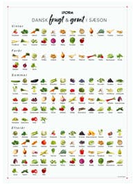 Hæng vores flotte sæsonplakat op på dit køleskab. Så har du et hurtigt overblik over, hvilke frugter og grøntsager, du skal gå efter, uanset om det er forår, sommer, efterår og vinter.