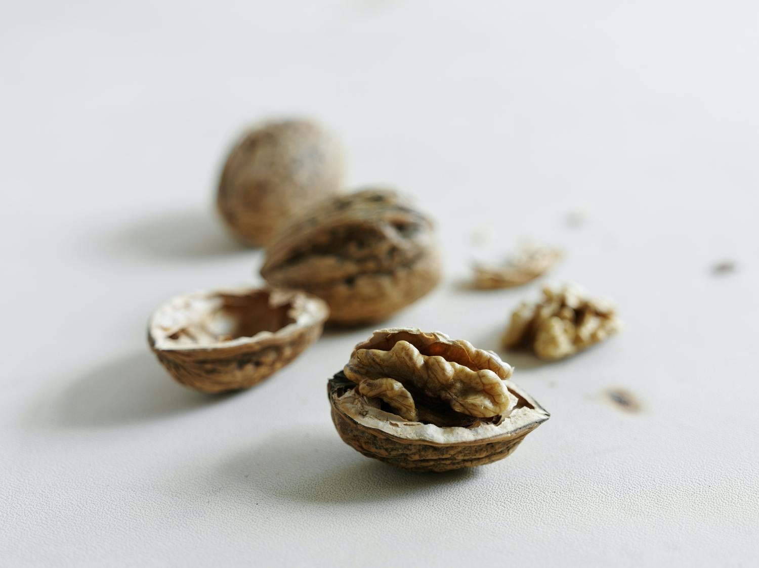 Valnødder er en fremragende kilde til de essentielle omega-3-fedtsyrer, som fx er en central bestanddel af hjernen. Med et indhold på 7,5 gram omega-3 pr. 100 gram overgår valnødderne langt de fleste fede fisk. Ud over omega-3 får du masser af B6-vitamin, der indgår i et hav af stofskiftereaktioner. Samtidig spiller det en vigtig rolle i dannelsen af røde blodlegemer.