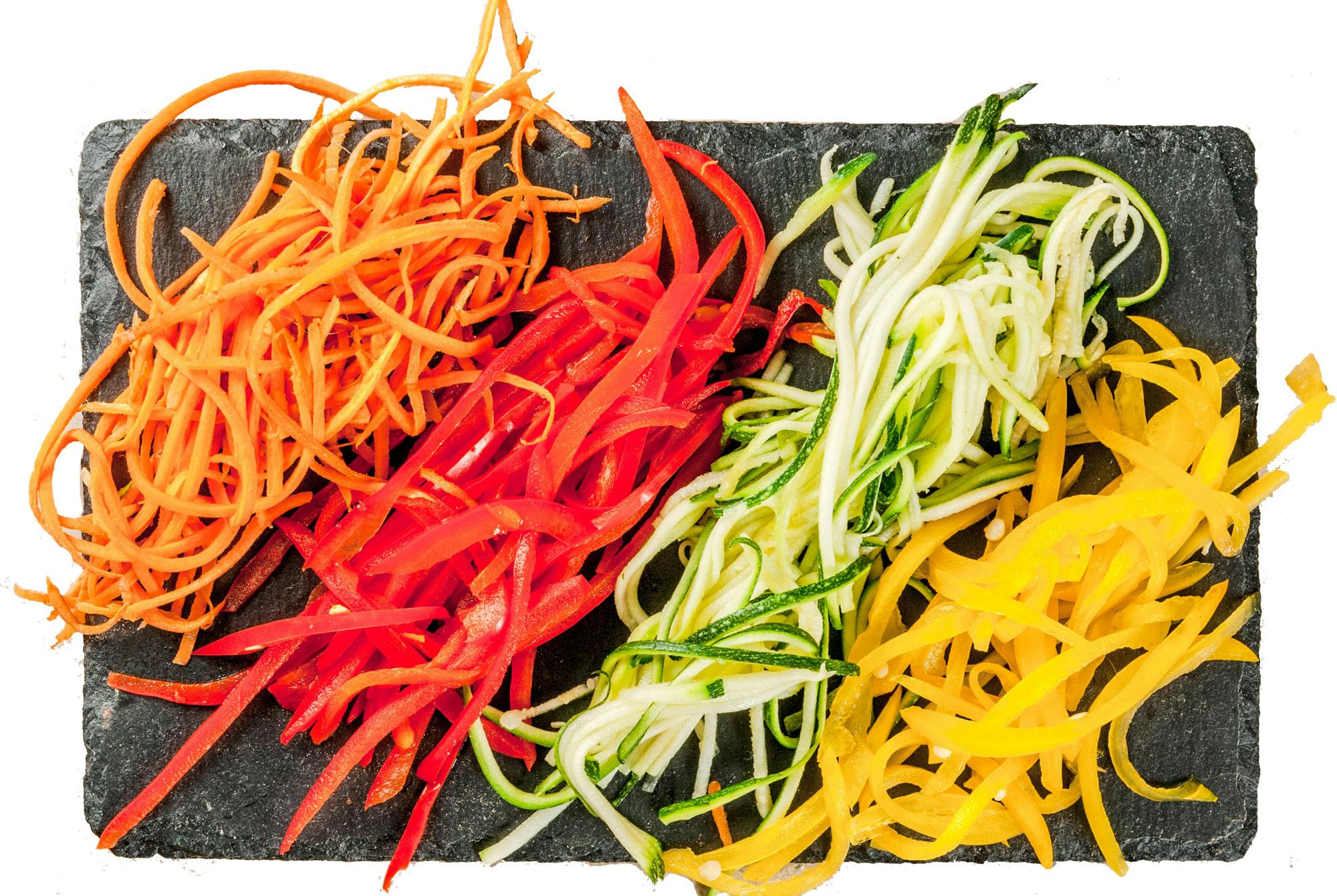 … hos dem, du serverer salater for, ved at skære nogle af grøntsagerne helt, helt tyndt ud. For det første ser det bare drøngodt ud med fx gulerødder i papirstynde strimler frem for tykke stykker. For det andet handler det om mundfornemmelse. Det er rart, at der er nogle forskellige strukturer i en ret, og ultrafine skiver skaber lethed og føles rare i munden i forhold til tykke stave.