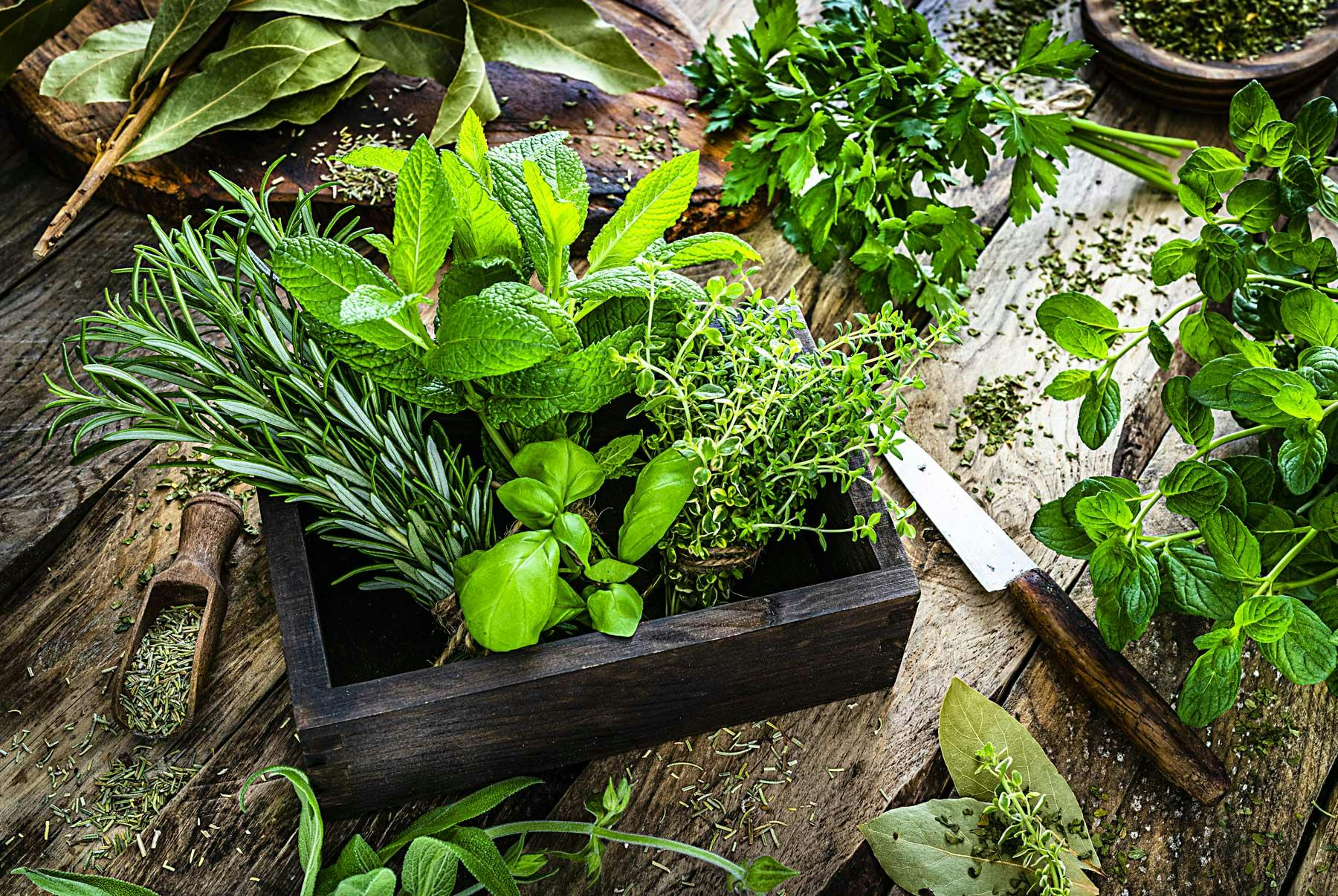 Frisk mynte, aromatisk basilikum, duftende citronmelisse ...