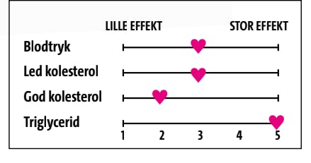 Fede fisk som makreller sænker indholdet af triglycerid i blodet og dermed risikoen for, at dine blodårer stoppes. Undersøgelser viser, at risikoen for at blive ramt af hjerte-kar-sygdomme mindskes betragteligt, hvis du ofte har fed fisk på tallerkenen. En del forskere peger også på fiskeoliens evne til at hæmme inflammation i kroppen som årsag til, at fisk har en kredsløbsvenlig effekt.