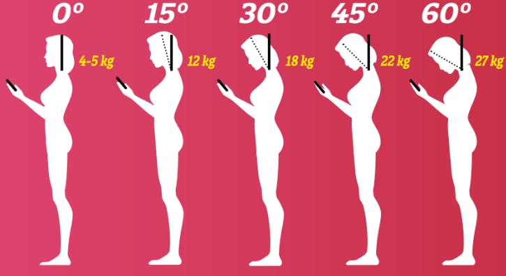 Når du bøjer hovedet nedad for for at kigge på din smartphone eller tablet giver det et øget pres på nakken.