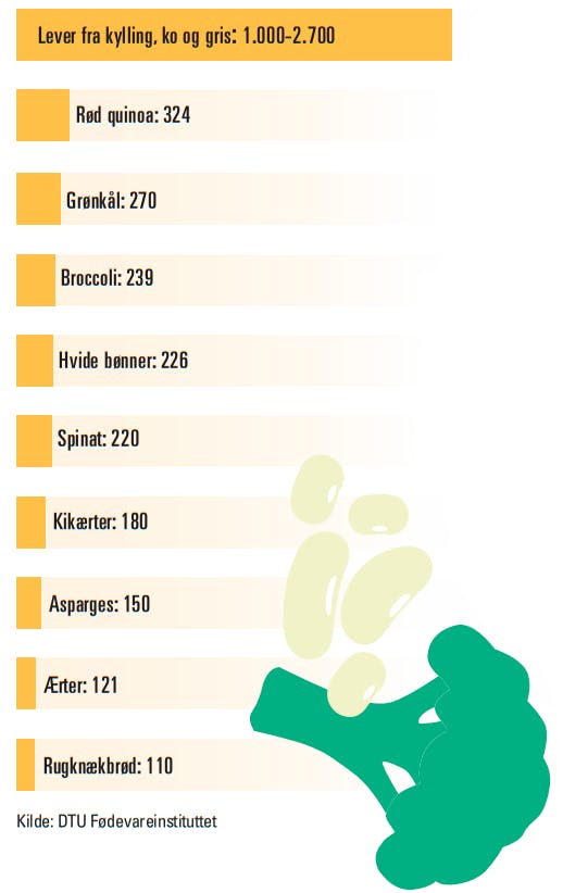 Er du gravid, så undgå lever, selvom indholdet af folinsyre er højt. Lever indeholder nemlig også store mængder A-vitamin, som kan skade dit foster. Leverpostej i mindre mængder er o.k.