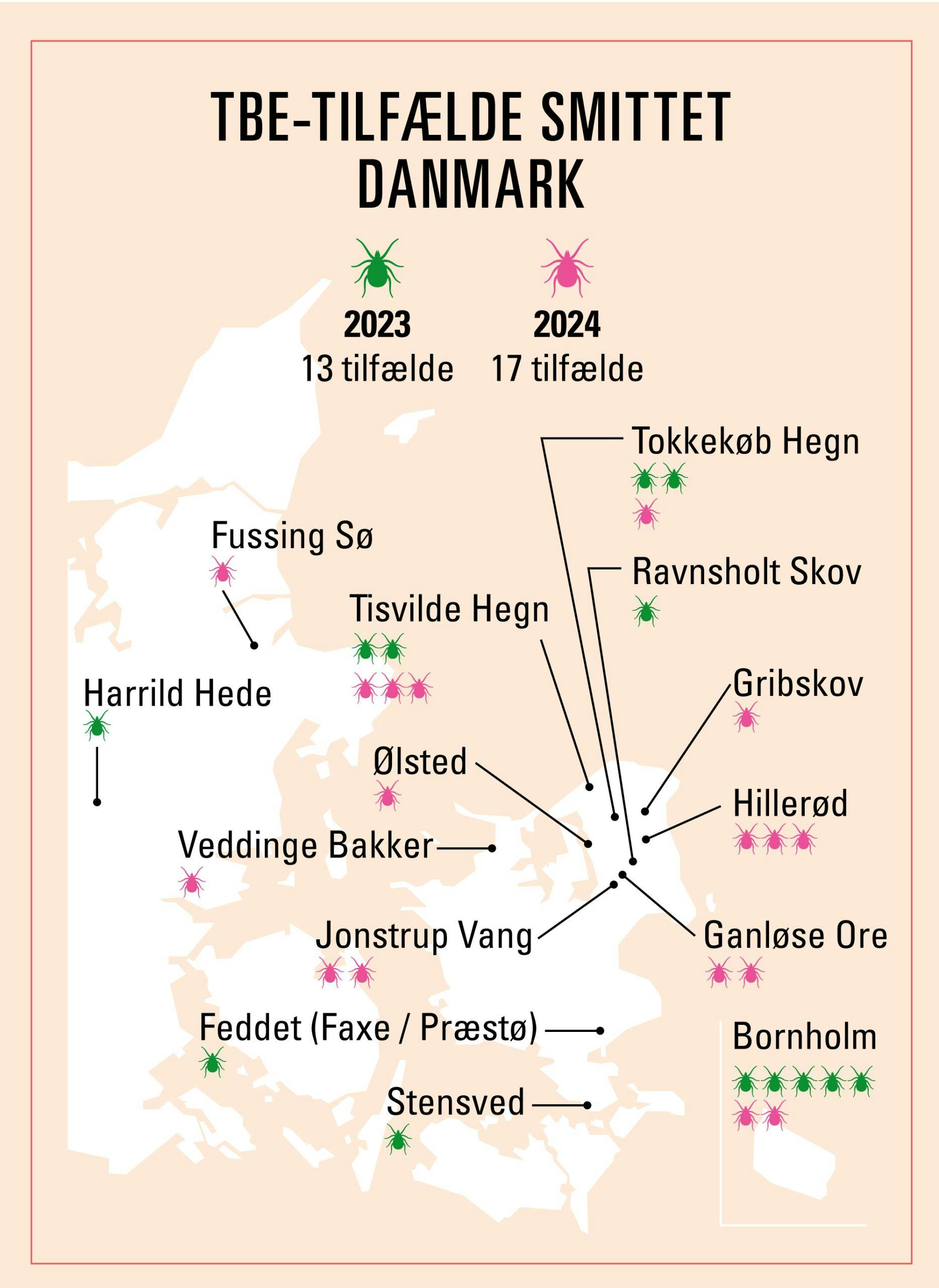 De seneste to til tre år er der dog sket en stigning af TBE-smittede i Danmark, samtidig med at man har set nye områder med smitte.