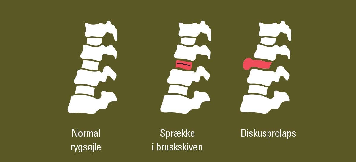 Ryggen består af syv halshvirvler, tolv brysthvirvler og fem lændehvirvler. Imellem hver af hvirvlerne sidder der skiver af brusk med en blød kerne (nucleus). Skiverne – diskus – fungerer som støddæmpere og gør det muligt for os at bevæge vores ryg.