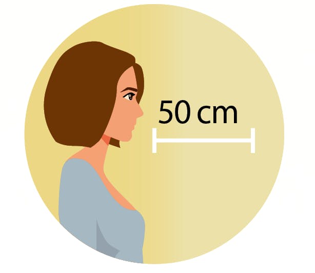 Da det er gennem øjnene, at lyset optages, skal du have lysterapilampen placeret foran dit ansigt i øjenhøjde eller højere med cirka en halv meters afstand.
