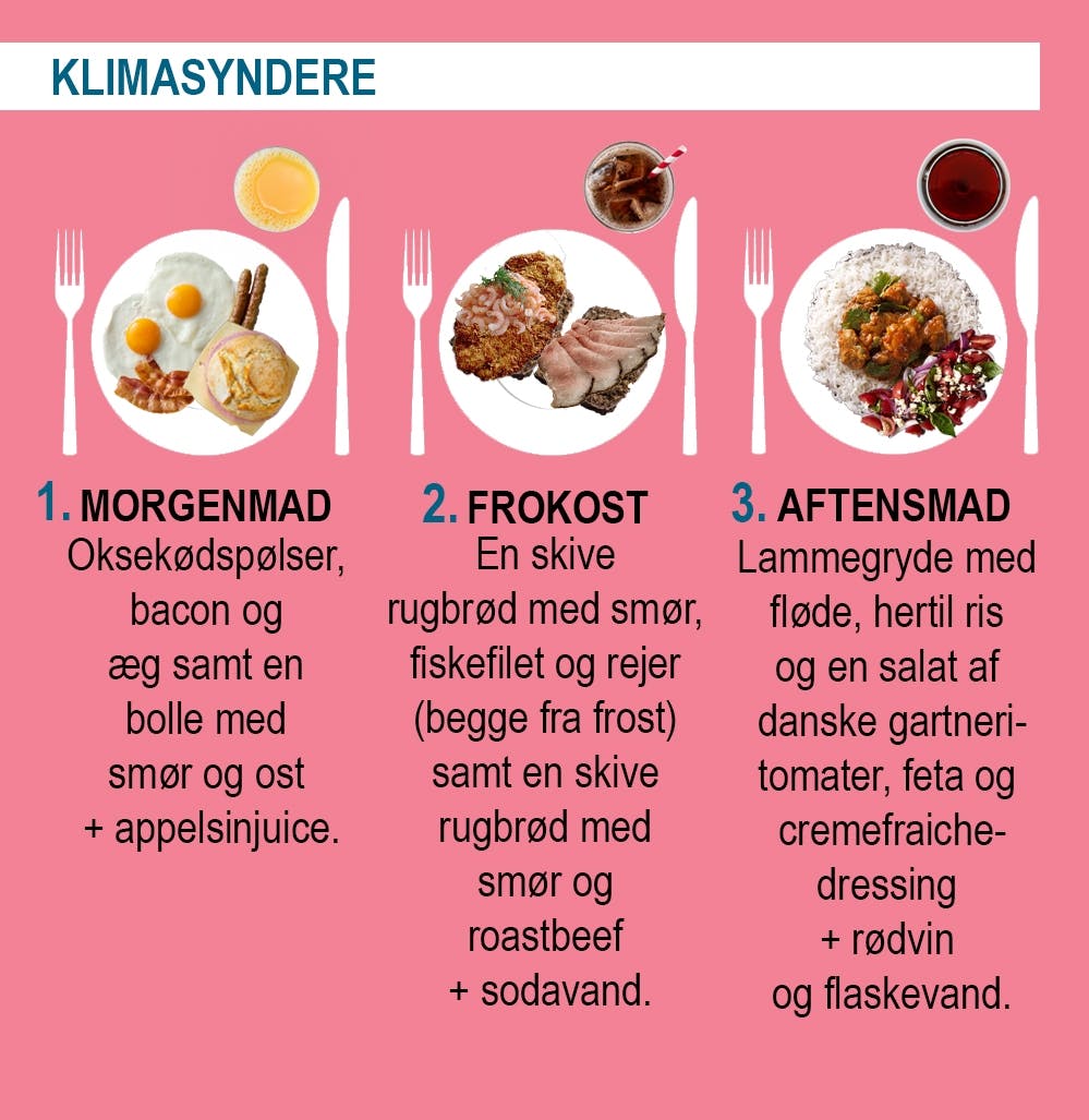 Klimabelastning måles i ton CO2-ækvivalenter (CO2e), og ifølge den grønne tænketank Concito udleder hver dansker 17 ton CO2e om året. Tre af disse ton kommer fra fødevareforbruget, og her stammer de 75 pct. fra kød og mejerivarer. Oksekødet alene står for ca. 1,5 ton.