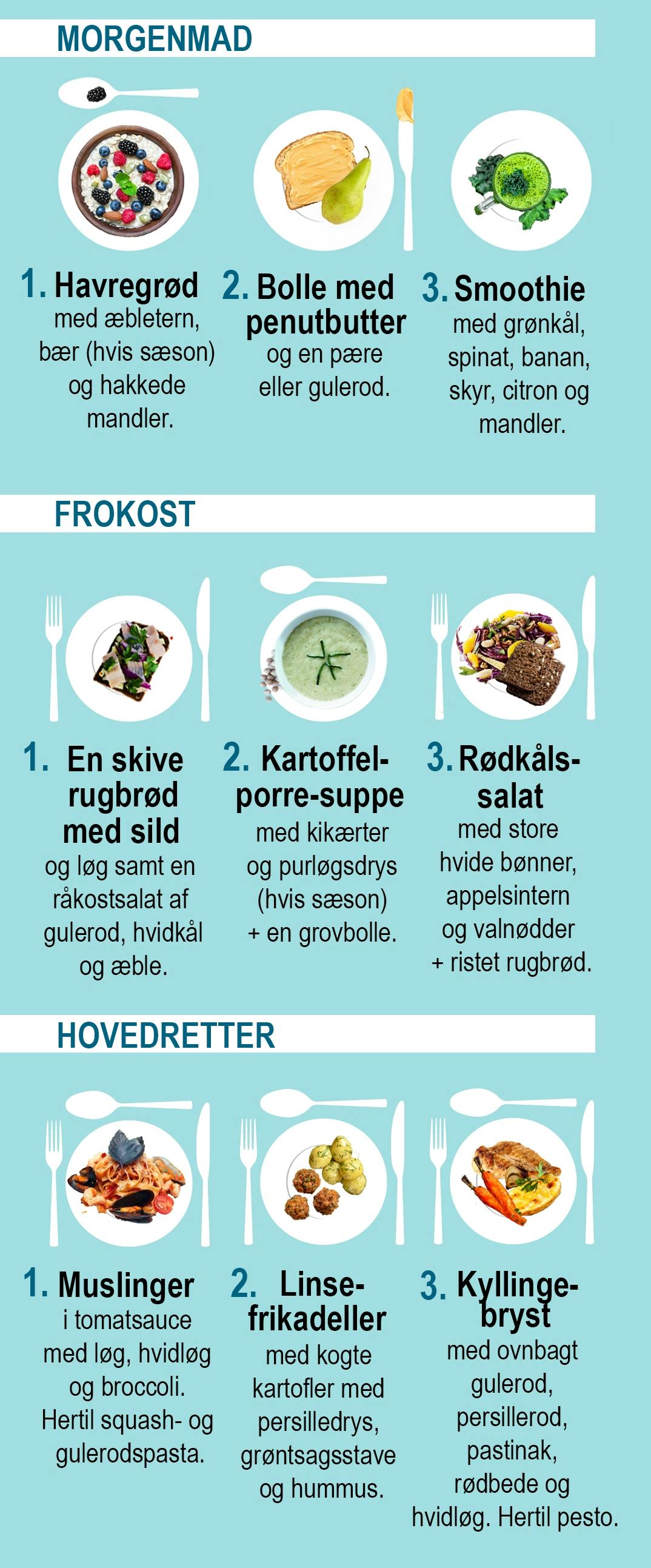 Klimavenlig kost! Bliver du træt bare ved tanken, så tag det roligt, for spiser du nogenlunde sundt, er du allerede godt på vej. Det handler nemlig i høj grad om at spise masser af frugt og grønt og mindre kød. Er du klar til at tage det næste skridt på klimavejen, så guider vi dig her til, hvad du skal spise mere af, og hvilke klimabelastende produkter du især skal skrue ned for. Og så serverer vi ni klimavenlige måltider for dig – og tre belastende ...