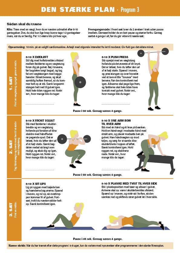 Når du har trænet efter dette program i 4-6 uger, kan du variere med nye øvelser eller programmerne i den slanke fitnessplan.