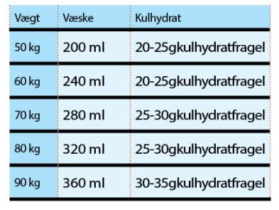 Dit væske og energibehov under et langt løb hænger sammen med din vægt. Her kan du se, hvor meget du skal spise og drikke for hver 5 km for at holde din krop så frisk som muligt.