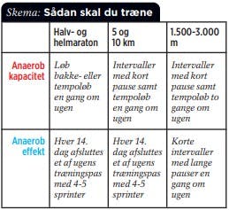 Når du skal sprinte fra konkurrenterne på de sidste 400 meter, gå med i et ryk eller accelerere hårdt på bakken, ændrer din energiomsætning sig fra aerob til anaerob. Jo større anaerob motor du har, jo bedre bliver du derfor til disse pludselige og voldsomme tempoforøgelser.### 2. Anaerob kapacitet