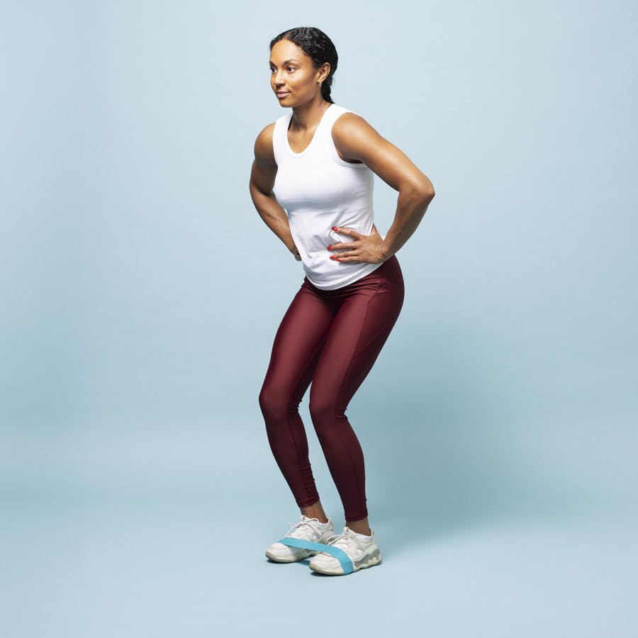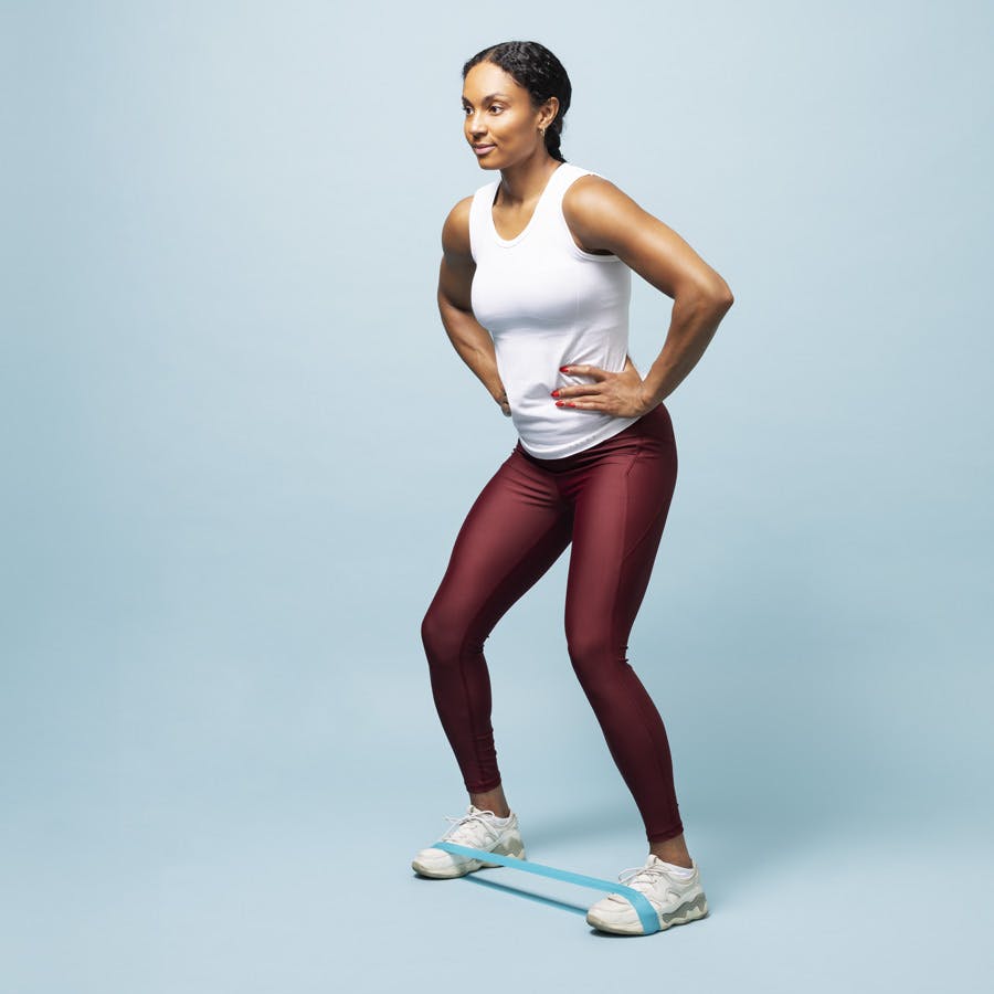 Er musklen svag, kan det give “kalveknæ” – altså knæ, der falder indad og belastes under motion. Øvelsen er derfor særligt god til dig, der døjer med knæ eller hofter, når du er eller har været fysisk aktiv.