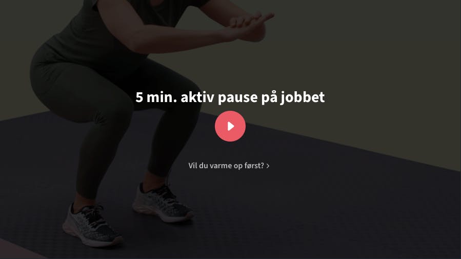 Pause-træningen består af tre øvelser, som styrker både baller, lår, mave, ryg og arme, så du får aktiveret hele kroppen på bare 5 minutter. Du behøver intet udstyr, og vi har sørget for, at du heller ikke skal ned at ligge på gulvet i dit arbejdstøj.