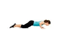Bøj ned i armene, samtidig med at knæene skubbes bagud, så hoften strækkes ud. Stræk armene, og træk knæene ind til udgangsstilling igen.