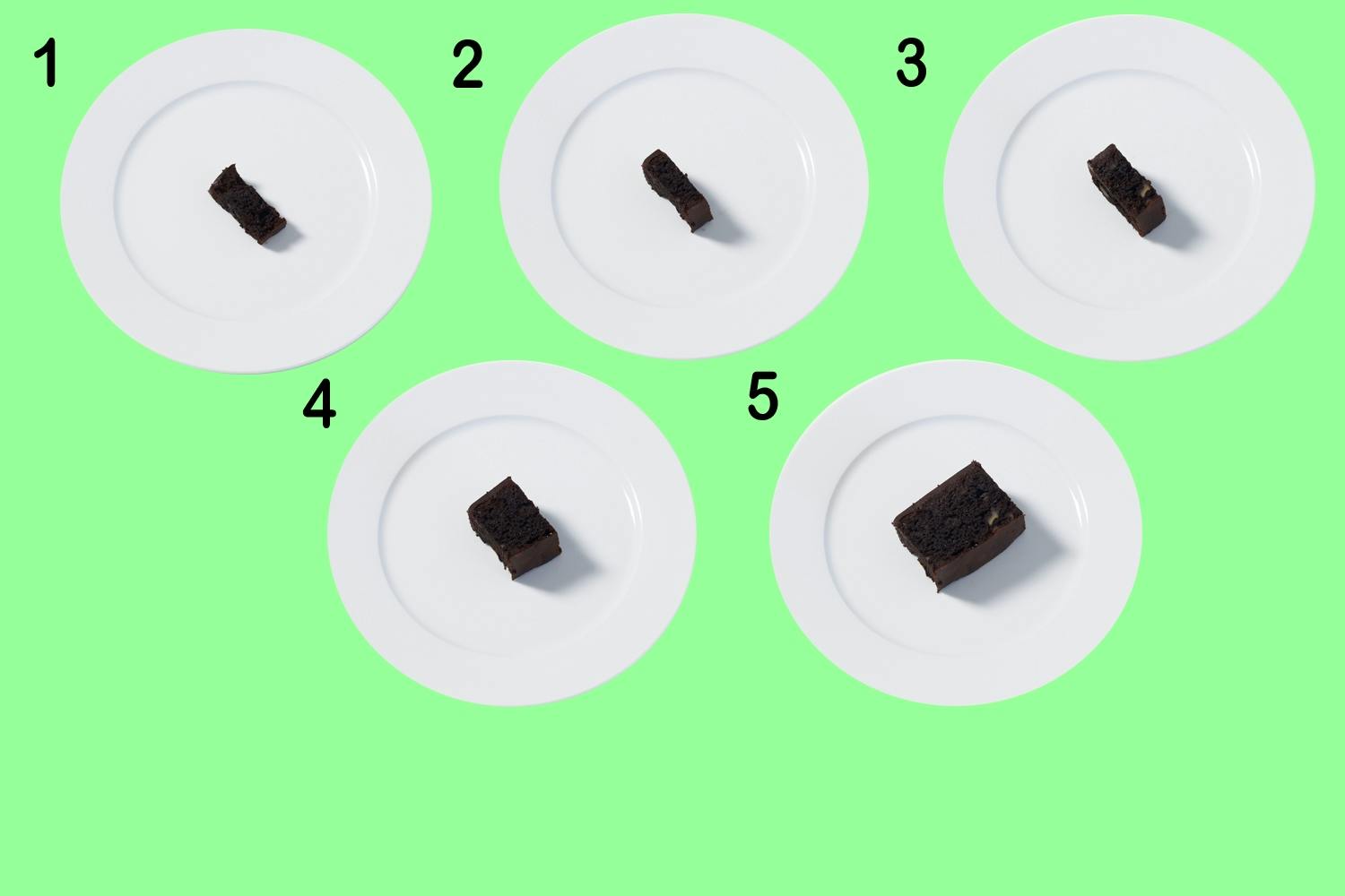Brownie: 1. 50 kalorier = 10 gram 2. 100 kalorier = 20 gram 3. 150 kalorier = 30 gram 4. 250 kalorier = 50 gram 5. 500 kalorier = 100 gram