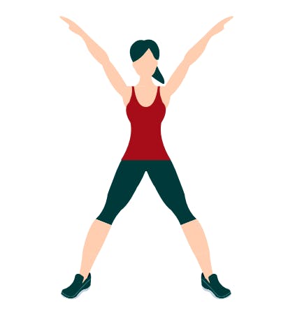 | 24 x sprællemand Stå i et X med arme og ben ud til siden. Hop ind, så fødderne samles, og dine hænder mødes over hovedet. Hop så ud i et X igen |