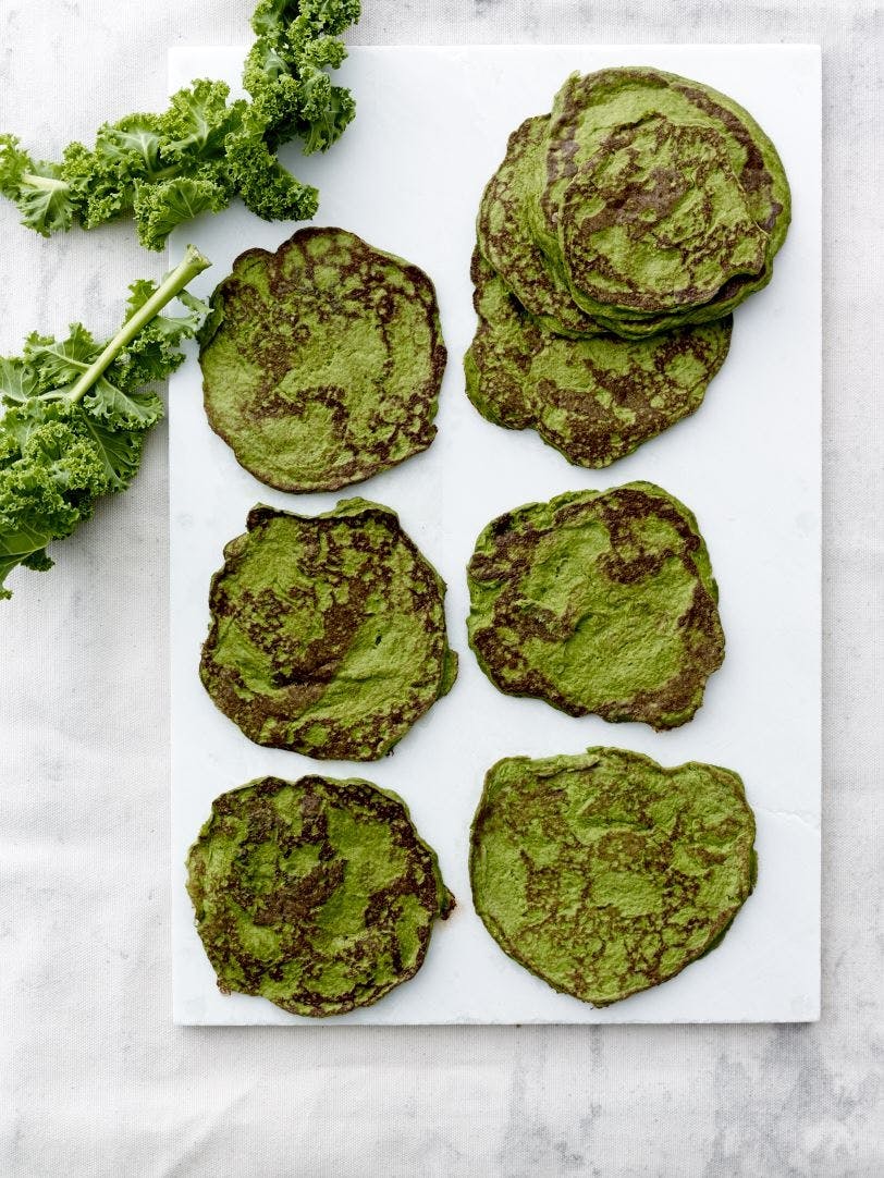 3 store blade grønkål uden stilk 5 æg 1 moden banan 1 avocado 1 drys stevia 1 drys vaniljepulver 1 spsk. fiberHusk 1 tsk. kokosolie til stegning